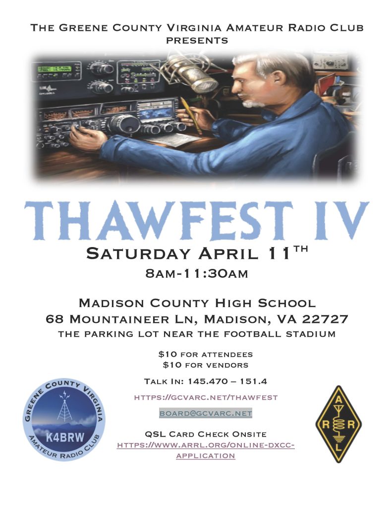 SVARC member Clint Estes KA4RBW shared this info about a hamfest on Saturday April 11th just an hour down the road in Madison County. This is his former club’s hamfest and is an outdoor event with bathrooms on totally level ground with parking within a few steps of the venders.